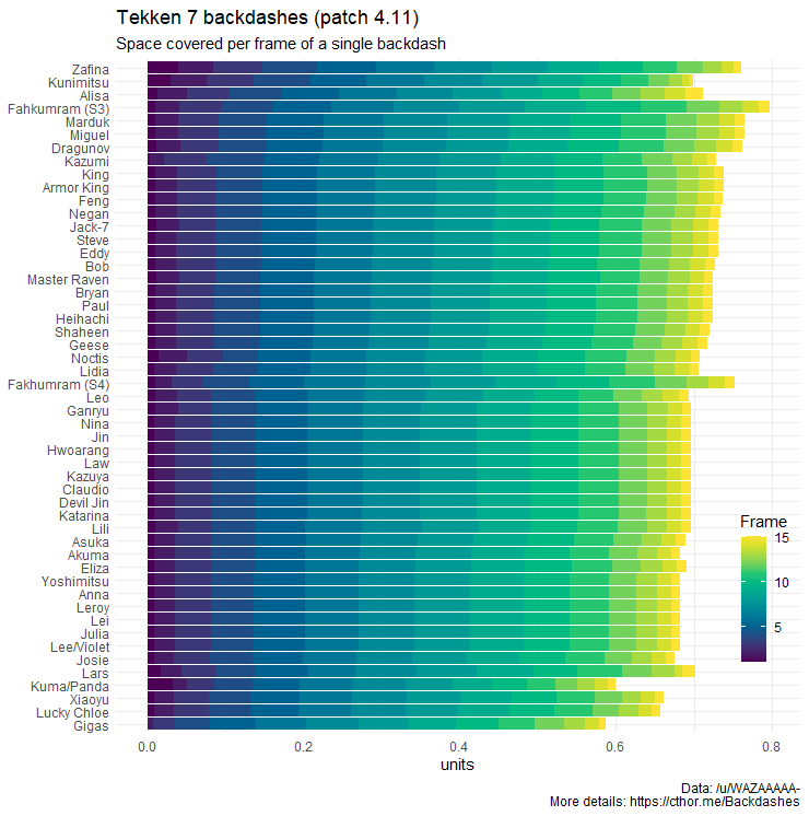Characters like Marduk, Miguel, and Dragonuv have fast backdashes that suggest they are almost as evasive as Alisa. Experience suggests the gap between them is larger than the data here indicates, and hitbox sizes seem like a plausible explanation.